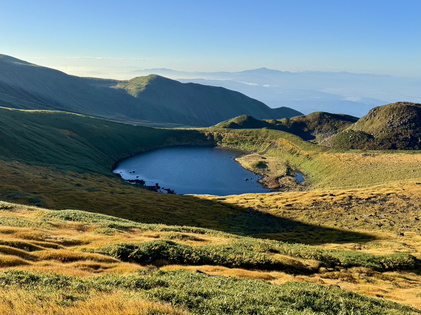 ☆御浜付近から鳥海湖と月山方面を俯瞰。草紅葉真っ盛り♪