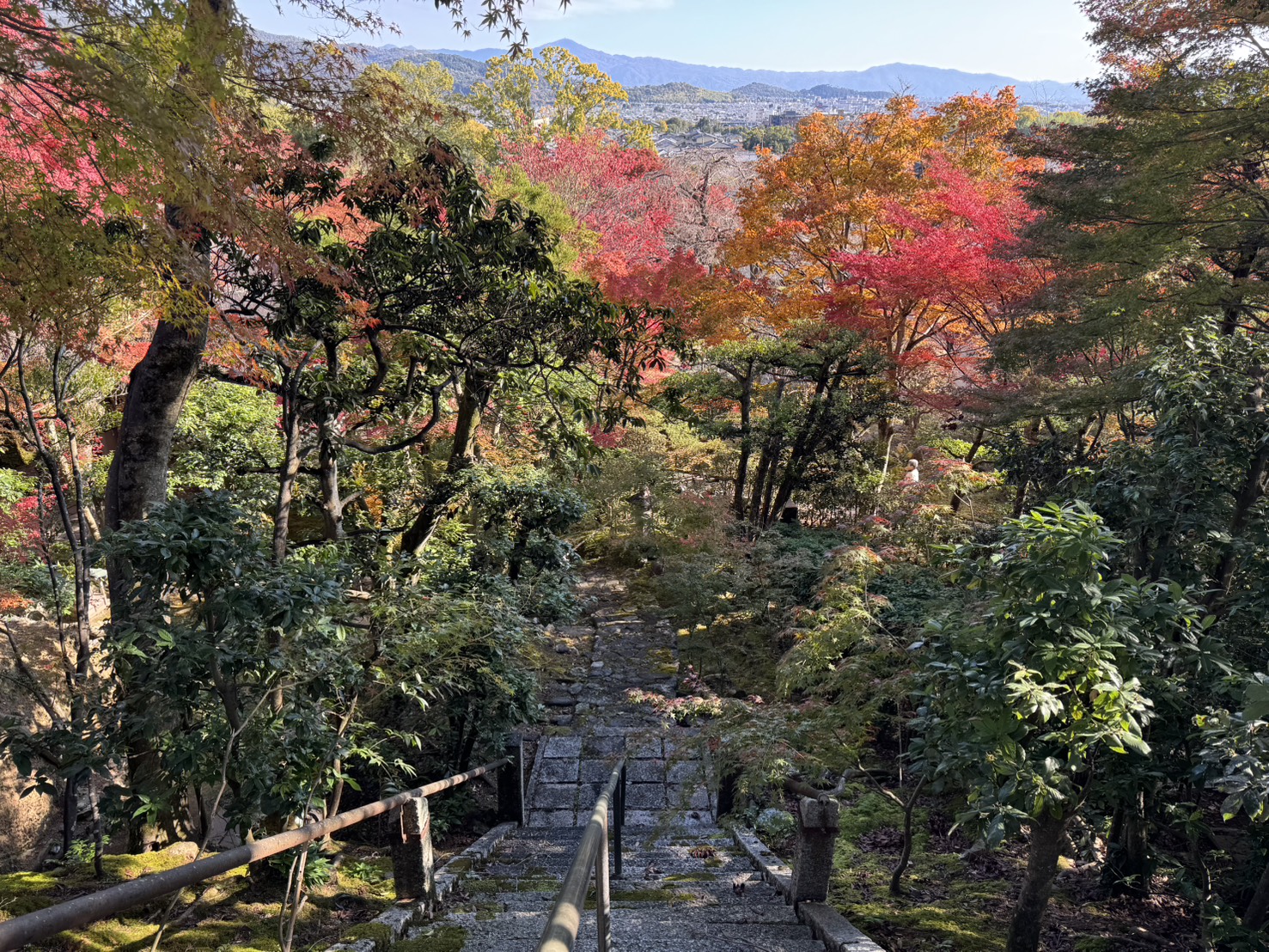 紅葉の名所「常寂光寺」。百人一首にも詠まれた小倉山の斜面に建つお寺さんです。