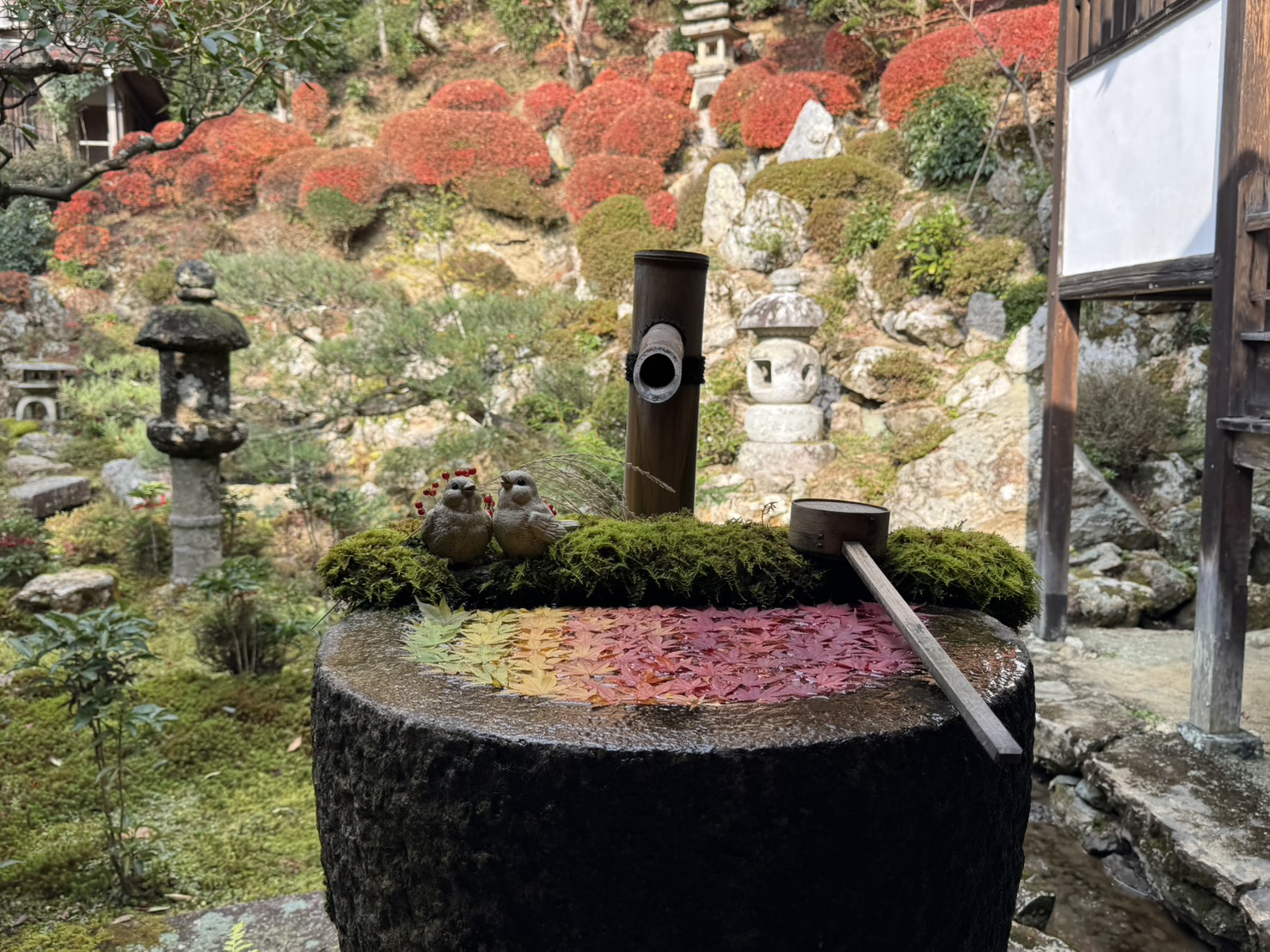 ☆楊谷寺。花手水ならぬ七色のモミジ手水が可愛いですね♪フォトスポット多数のお寺さん。