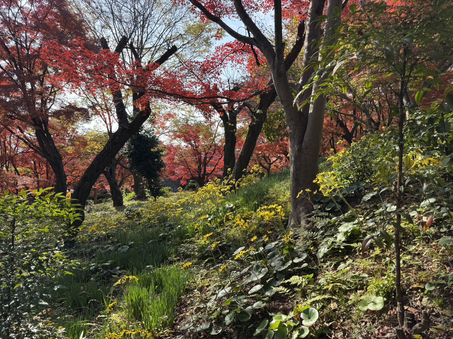 ☆大山崎山荘美術館庭園。モミジとツワブキの対比が綺麗でした♪