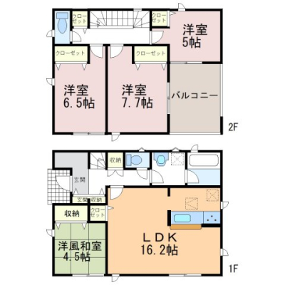 築年月 | 2025年11月築 | 間取り | 4LDK (LDK16.2/和室4.5/洋室7.7/洋室6.5/洋室5) | ||