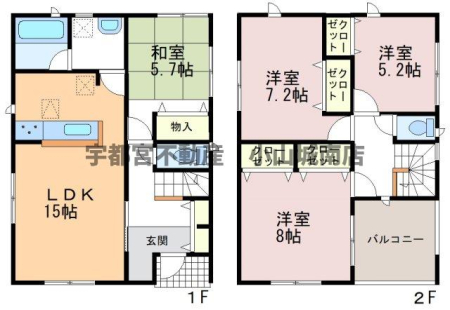 ◆宇都宮市郊外の落ち着いたエリアで、ゆとりあるスローライフをお求めの方へ ◆快適なワークライフバランスを実現する、賢く使える4LDK ◆家事効率を考えた配置でLDKと水回りが近い位置にあり、料理をしながら洗濯や入浴の準備もしやすいスムーズな動線 ◆近隣にはショッピングセンターアクロスプラザ宝木やその他の商業施設が揃っており、日々の食料品から衣料品まで、車ですぐにアクセス可能