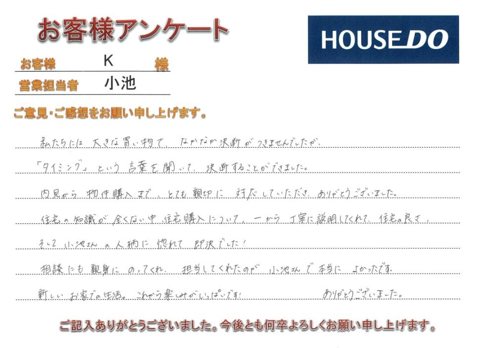 この度は、マイホームご成約おめでとうございます! 嬉しいコメントありがとうございました。 皆様、一生に一度のお買い物ですので、決断が難しいですが、 『タイミング』は本当に大切ですので、無事掴んでいただき嬉しく思います。 皆様、不動産についてご不安な部分あるかと思いますので、すこしでも払拭できる接客心がけております。 新生活是非、お楽しみくださいませ!