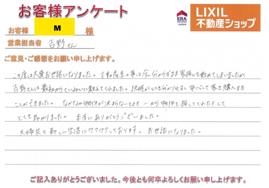 どの様に探していくかというところからお二人のご通勤やお子様の将来なども、一緒にお話させて頂き最終的にお二人にとっても将来のお子様の利便性にもとても良い場所でお話も進めることができ良かったです。
