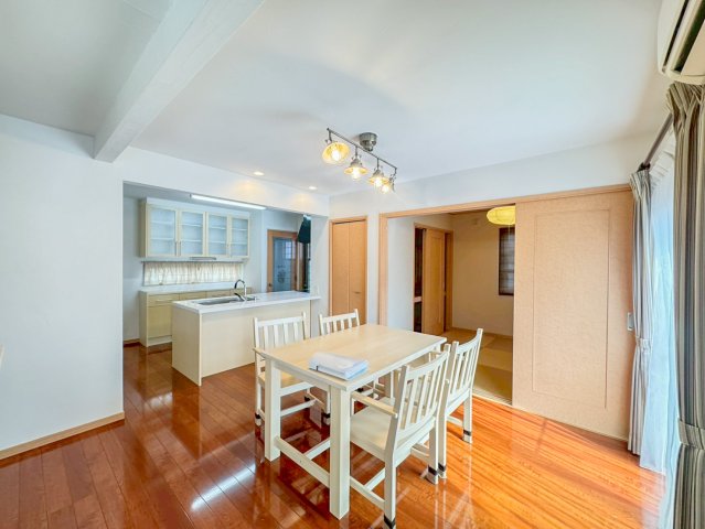 【リビング】オーダーメイドのダイニングテーブル付。和室と合わせて約25帖!