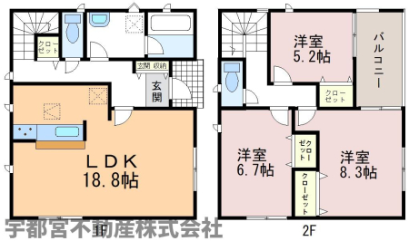 | 築年月 | 2026年3月築 | 間取り | 3LDK (LDK18.8/洋室8.3/洋室6.7/洋室5.2) | ||